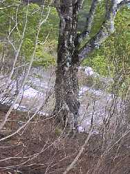 山頂付近には6月だというのに1m以上の積雪があり、大きな「根開け」が見られます。